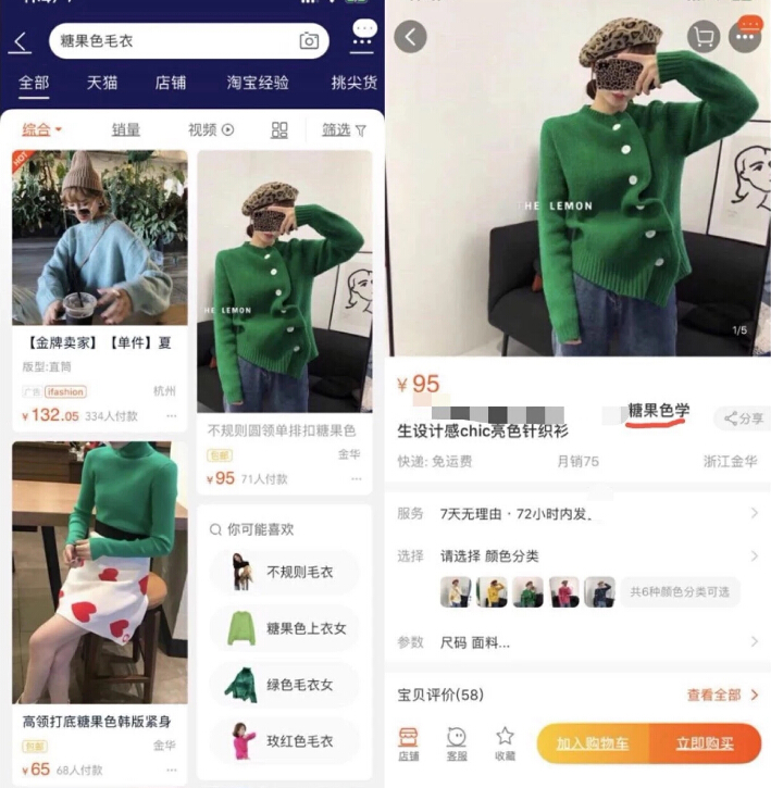 淘宝代运营举例来说,在用户搜索关键词“糖果色毛衣”的时候,我们看上图中用户端展现的综合排名靠前的其中一个产品,发现它的标题中并没有“糖果色毛衣“这个关键词,标题中只有”糖果色针织衫”,但是在综合入口下的搜索列表依旧展现。反推现在的引擎匹配逻辑,现在系统更加关注“糖果色”这样带有用户强烈搜索购物偏好的关键词。如果我们卖的衣服是糖果色,定位也是喜好糖果色这种鲜明颜色的用户,标题就不要写“小清新”来扰乱引擎对我们产品的判断了。