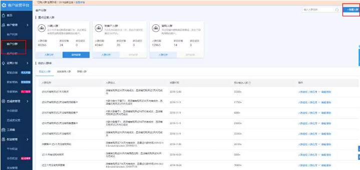 我们可以在客户运营平台,根据自己客户的购买周期以及兴趣人群,进行分群勾选,勾选好之后就可以用不同的场景营销,短信、海报、优惠券都是可以的,相应的力度和话术根据不同的人群要进行策划。
