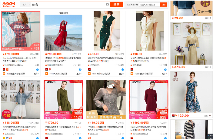首先在线上购物时,淘宝就相当于我们线下购物时去的商场。假设我们要买女式连衣裙,线下购物时,我们会进入商场,去女装区,在橱窗里面,通过模特去看衣服。而在线上购物时,我们会在淘宝搜索栏,直接搜连衣裙,那么连衣裙的产品就会一个一个展示出来,我们会通过挑选卖家的主图进店。