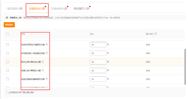 店铺人群标签清晰化之后,可以将人群精确到我们店铺的合适的 客户群体中,而利用搜索人群,可以针对受众群体来进行重点投放,区分出价,从而减少推广成本,精细化推广费用,转化效果也会是比较好的。同时,对于店铺的其他属性人群,比如浏览未购买的访客,收藏,加购过产品的访客以及浏览过相似产品或者店铺的访客组,我们的溢价都可以按照具体情况来进行相应的设置,可以为了提高展现而进行针对性的设置不同的溢价比例,这样可以大大的提高店铺流量的转化率。