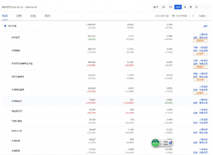 搜索流量和首页流量具有各自的特征,首页流量更对应于标签,虽稳定性相比较差,体量大也足以让店铺做到爆发。而搜索流量更对应于关键词、人群、权重等的配合。