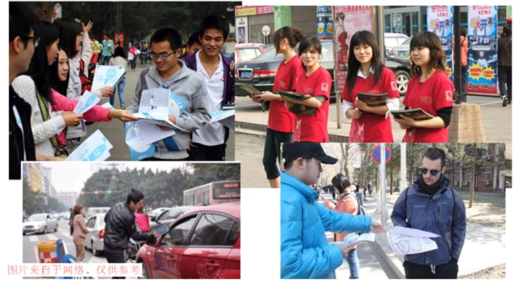 我们看上图,光看图片我们就能猜到了,对的!就是发传单。假如你新开了一家饭店,店里饭菜好吃还便宜,而且开业前几天还半价送小凉菜,这么大的诱惑,你是去呢?还是去呢?还是去呢?
